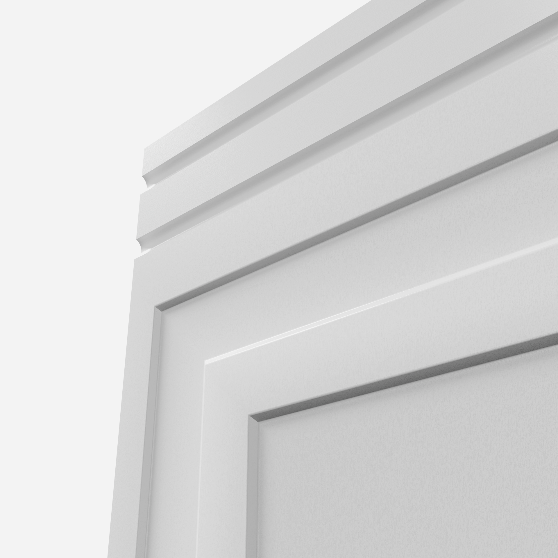 MDF-Element mit weißer Grundierung, das Material ist für die nachträgliche Lackierung in gewünschter Farbe vorbereitet.