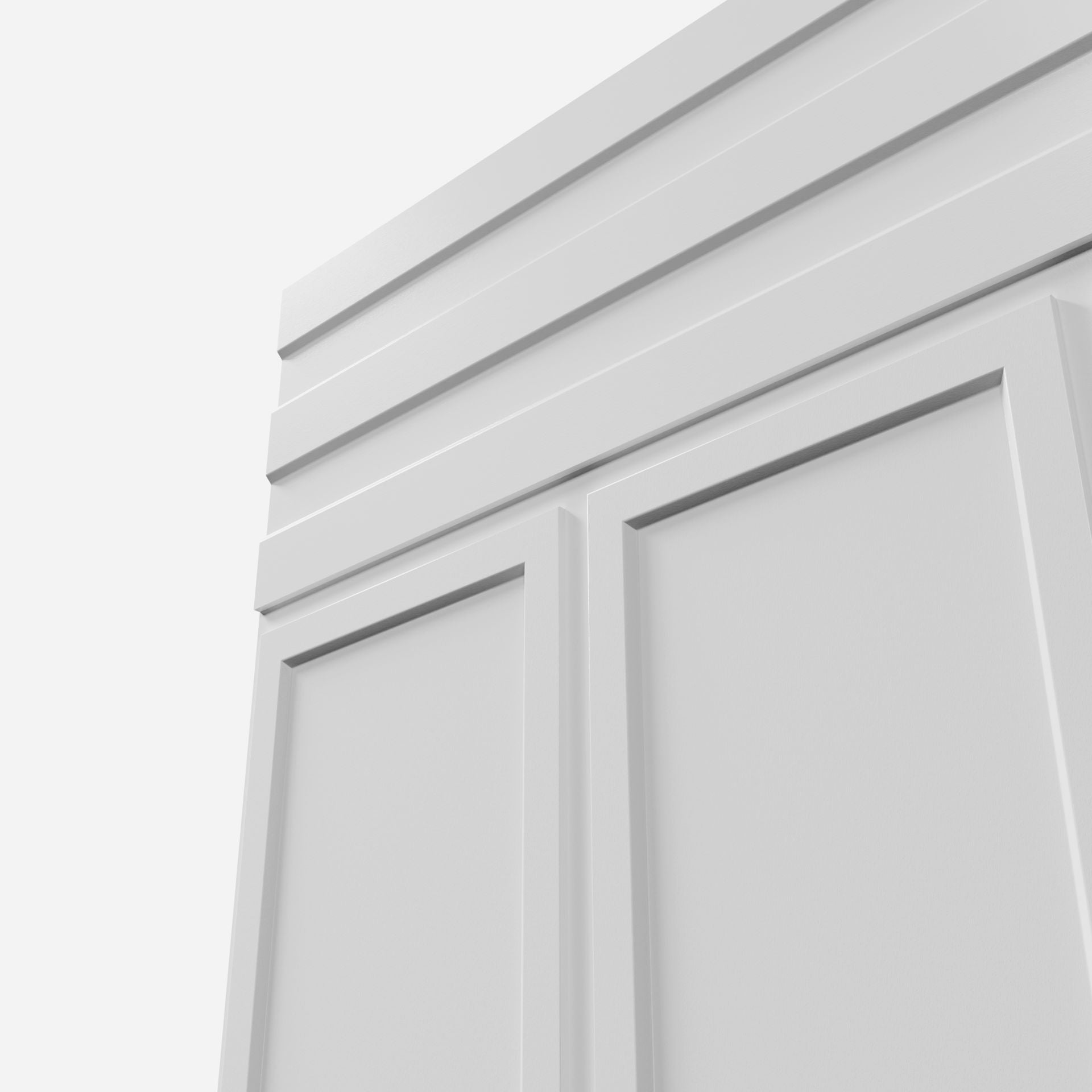 MDF-Element mit weißer Grundierung, das Material ist für die nachträgliche Lackierung in gewünschter Farbe vorbereitet.